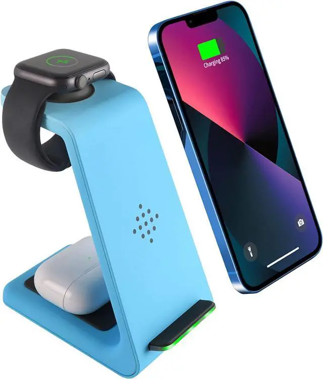 3 in 1 Wireless charger standThe 3 in 1 wireless charging station can provide a more stable charging experience without intermittent charging or overheating caused by mismatch. The design of the built-in professional wireless charging coil make your AirPods Pro, iPhone, and Apple Watch being charged simultaneously.