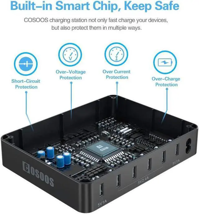Absolute Safety & Protection - COSOOS Charging stations own cutting-edge circuitry and protects against short-circuit, over-voltage, over current, over-charge and travels friendly input voltage range of 100 - 240 volts. Built-in 100% premium copper wire with high standard quality control. One of memorable presents that you can give.