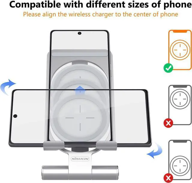 Adjustable Angles - Convenient to use while charging, Adjust the angle of the stand to your liking, with a range of up to 90 degrees. The wireless charging module can also be positioned to suit different phone sizes and supports both vertical and horizontal charging and viewing.