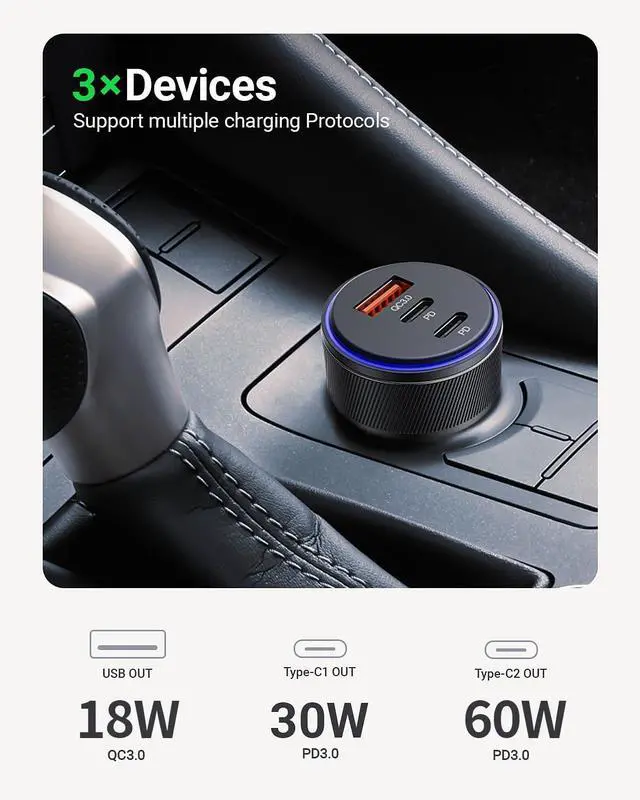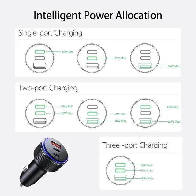 Widely CompatibilityThis multi-port usb car charger compatible with MacBook Pro/Air/mini, iPhone 16/16 Plus/16 Pro/16 Pro Max 15/14/13/12/11/X/series, Chromebook, Drone, iPad Pro/Air/mini, Samsung S24/S23/S22/S21 Ultra/Tab S9/S8, Dell, HP, Google Pixelbook, Switch, Steam Deck, ROG Ally, AirPods, etc.