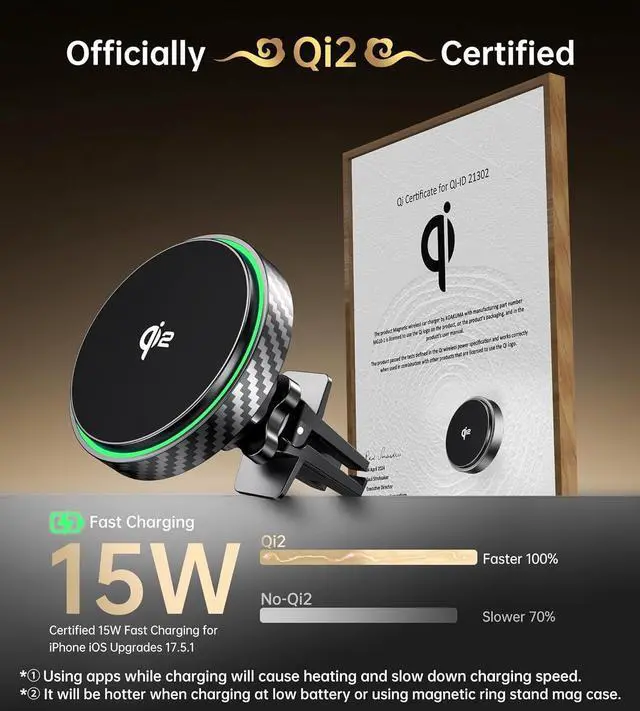 Certified Fast Charging: Officially Qi2-certified 15W MagSafe charger. It gives you safer charging at faster speeds