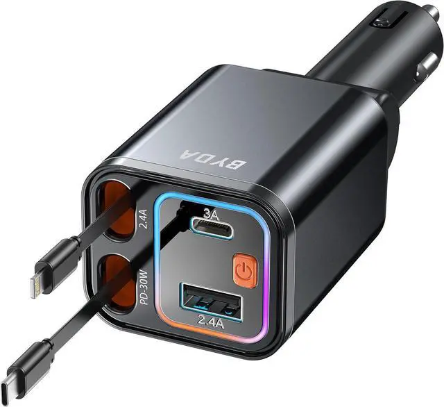 What You Get: Byda 69w Car Charger (4-In-1 Ports With Dual Built-In Retractable Cable), An 18-Month Warranty, And Our Friendly Customer Support