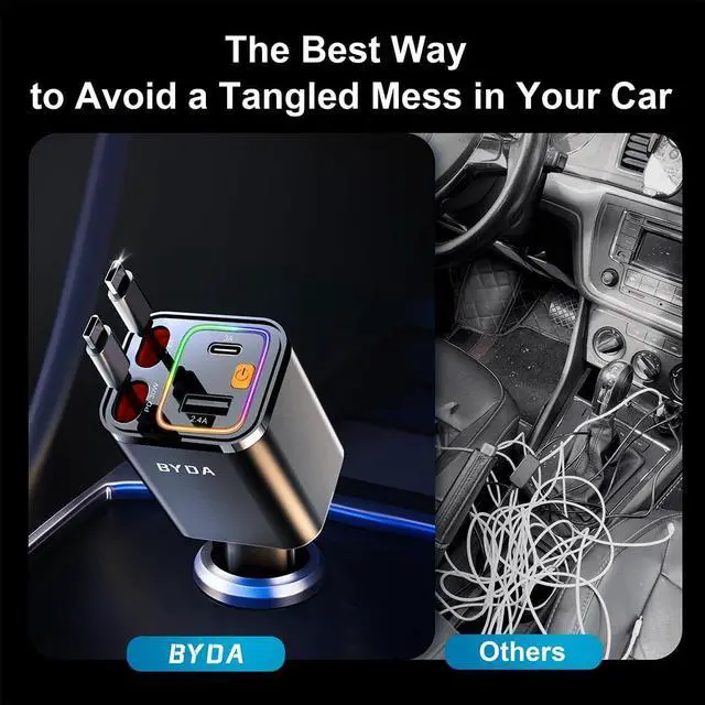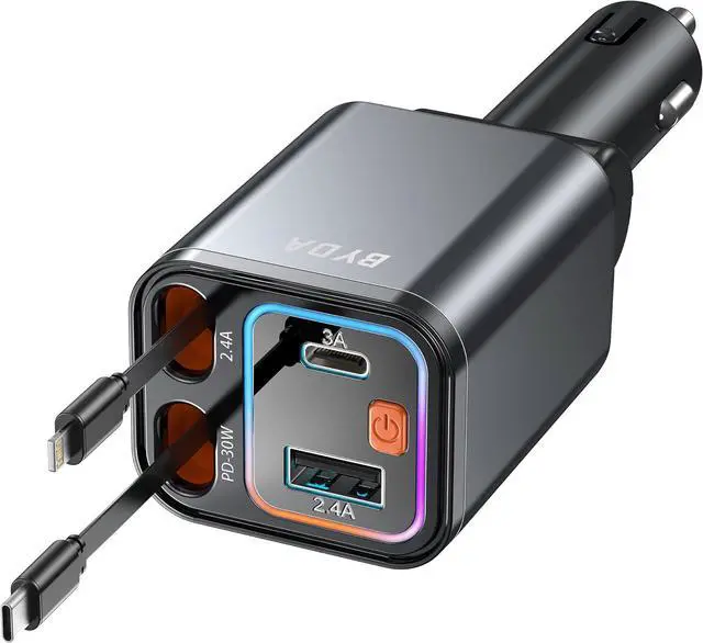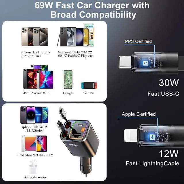 What You Get: Byda 69w Car Charger (4-In-1 Ports With Dual Built-In Retractable Cable), An 18-Month Warranty, And Our Friendly Customer Support