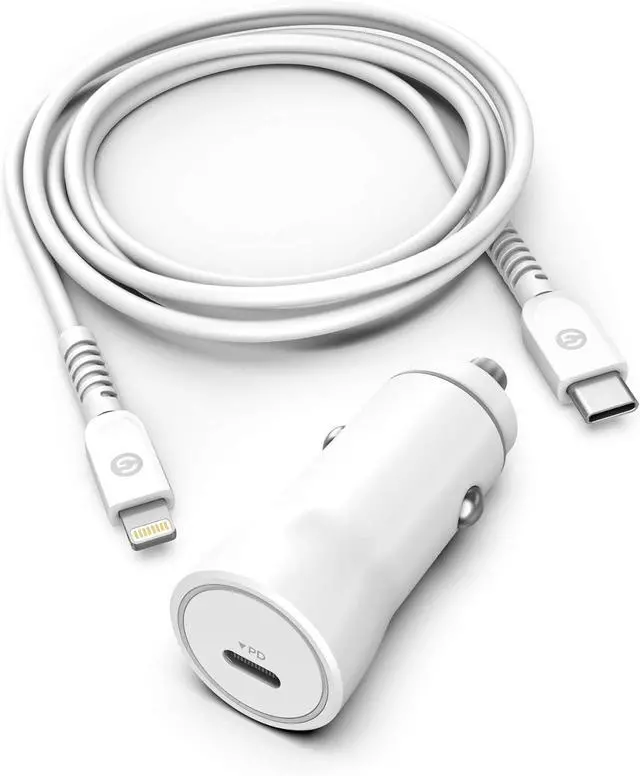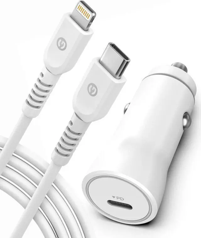 Your car charger includes one 3ft USB Type C to Lightning cable (Apple MFi Certified) and one PD 18W vehicle power adapter.