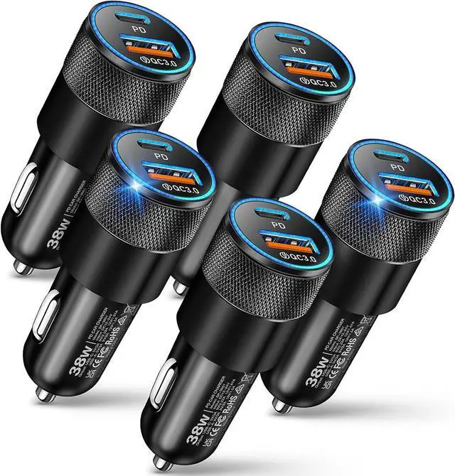 Dual-Port Cigarette Lighter AdapterUSB C Car Charger equipped with PD 20W (Max) and 18W (Max) output (Total 38W), can fast charge all prevailing phones and other devices simultaneously. This car charger usb c with both of USB-A and USB-C ports can work with multiple devices.