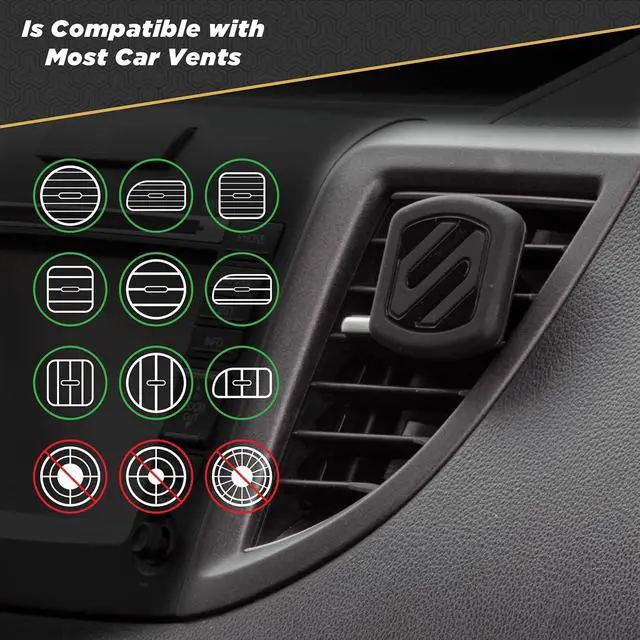 Vent Mount Accessories Included - Car air vent mounts, MagicPlates, protective film and user manual. Backed by Scosches Lifetime Tech Support and 3-Year Limited Warranty.