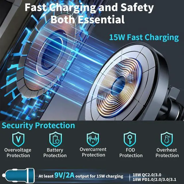 The Latest Wireless Charging Technology and Chips-15W Safe Fast ChargingThis product uses the latest wireless charging technology chip, which has protection functions such as over-temperature protection, over-current protection, and over-voltage protectionso that the charging process is safe and reliable. At the same time, this product has been specially designed for iPhone&Samsung Galaxy, which can better protect the mobile phone battery;