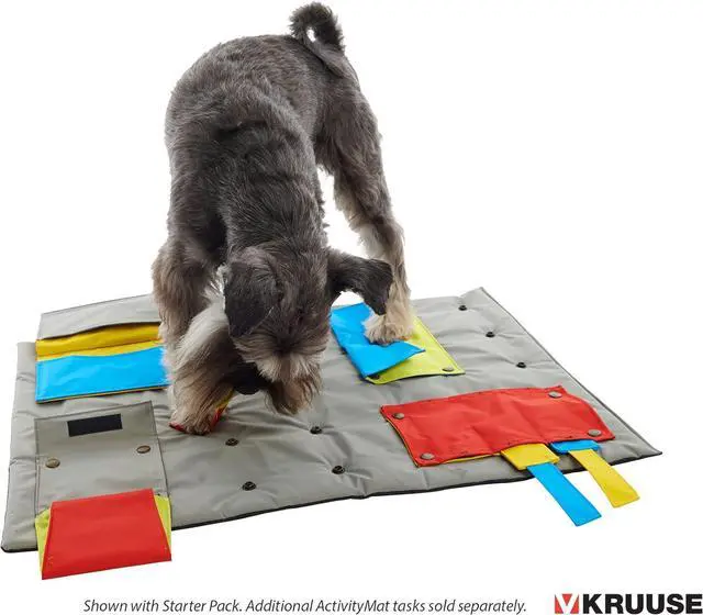 The BUSTER Activity Mat is designed in Denmark by Marianne Haller Vesterholt to play and interact with her miniature schnauzer Ludwig when he got too smart for traditional toys. It is also recommended by dog psychologist Anders Hallgren