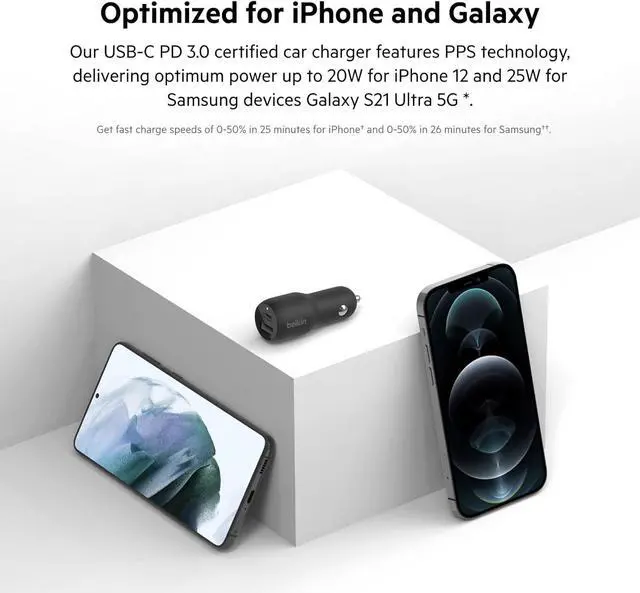 FAST CHARGING TECHNOLOGY: This 37W usb c call charger allows you to fast charge an iPhone 14 or a Galaxy S23 Ultra from 0-50% in 25 minutes. It uses PPS technology to dynamically adjust the output voltage based on the device it's connected to.