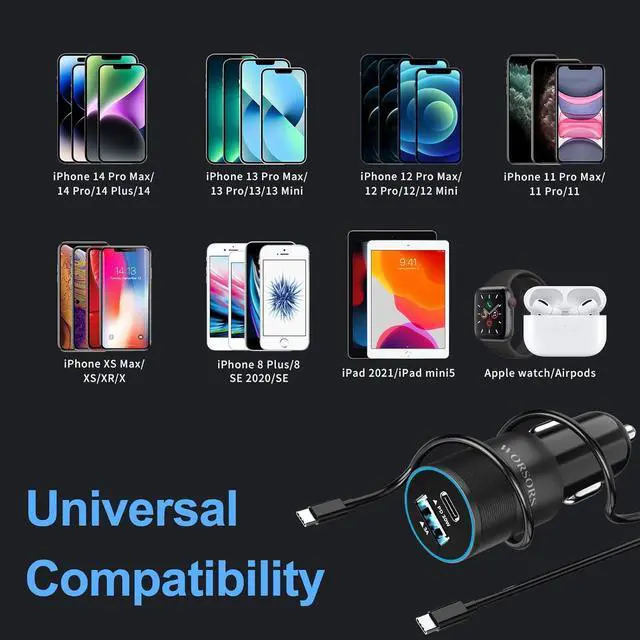 (Fast Charging Compatible list: iPhone 14 Pro Max/14 Pro/14 Plus/14/13 Pro Max/13 Pro/13/13 Mini/12 Pro Max/12 Pro/12/12 Mini/11 Pro Max/11 Pro/11/XS Max/XS/XR/X/8 Plus/8/SE 2020)35W Dual Port Fast ChargeWith an extra 5V/3A port this car charger can fast charge 2 devices simultaneously. And the USB A & USB C dual port design can greatly meet the charging needs of different types of electronic devicesMFi Certified CableThe 3.3 ft cable is MFi certified which work flawlessly for all iOS devices. Cable supports 3A high output and has passed 10000+ bending lifespan test provides full speed charging for your devices and ensures durabilitySafe Chargingcar charger meets UL 2089 safety standard and has CE FCC and RoHS certifications. Built-in protection system against over-current over-voltage over-charging and over-heating ensures you and your devices completely safePackage Contents20W PD Car Charger X 1 3.3FT Cable X 1 WORSORS Care X 18 Months