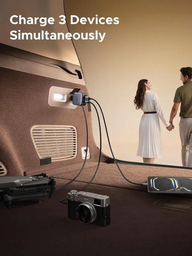 Multi-device Charging: The car charging adapter can charge three devices at once: 30W from the USB-C cable and 7.5W each from the USB-C and USB-A portsgreat for shared rides family trips and daily commutesWide