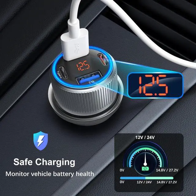Wide Compatible: Wide range from dc 12V-24V (6A) the 12 volt usb c car charger outlet works great with smart phones tablets wireless car charger dash cams usb fans and other usbc and usb car accessories. Fast charge compatible with iPhone 16/15/14/13/12/11 Pro Max/Plus/Mimi; Pad Pro/Mini; iPhone XR/SE/XR/Xs/Xs Max/8/7 Plus Galaxy S25/S24/S23/S22/21/S20/S10/S9/S8+ Note 20/10/9/8 A03S 5G/A13/A14/A15/A53/A54/A71 android phones driving recorder GPS navigation car vacuum cleaner power banks and other devices.