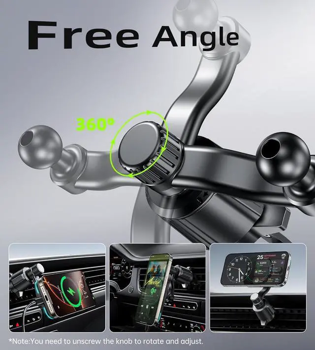 Adjustable Arm: Mount this wireless car mount to air vent adjust the arm freely for your driving angle. Long adjustable arm do not block air ventWhat's in the