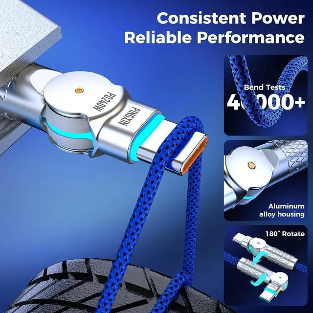 Design: The USB-C to USB-C 6.6FT Braided 180 degree double head rotatiocable prioritizes your comfort curating an effortless connective experience with its user-friendly180 degree double head rotatio design to enhance your daily plug-in momentsHighly Durable and