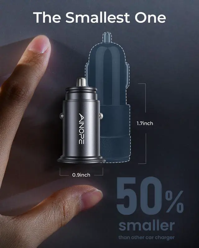 The tiny thumb-sized design ( 1.7 (L) x 0.9 (W) ) ensures that this USB cigarette lighter adapter fits seamlessly into most car cigarette lighters barely protruding past the edge of the outlet. Its compact and minimalist design not only enhances the aesthetic of your car interior but also keeps your space organized and clutter-free. Lightweight portable and perfect for on-the-go use this is a must-have car phone charger for both women and men.: 4.8A /24W HIGH-SPEED CHARGING