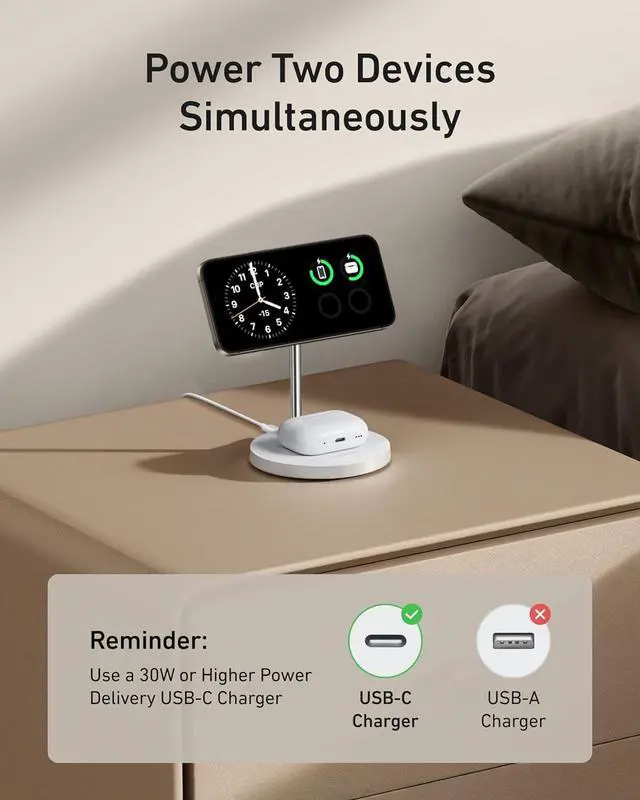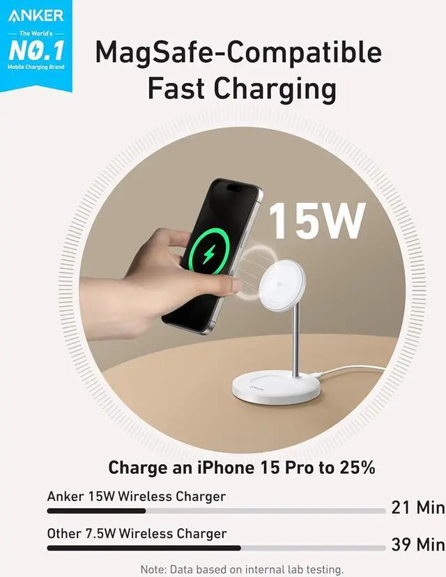 Charging: Charge your iPhone 15 Pro up to 25% in just 21 minutes with this MagSafe-compatible 15W fast charger. Charge 2 Devices at