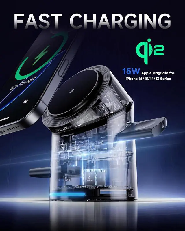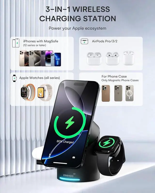 Durability: ZEEHOO magnetic charger stand for Equipped with over-current protection temperature monitoring and excellent heat dissipation design ensuring the longevity of your devices batteryIN