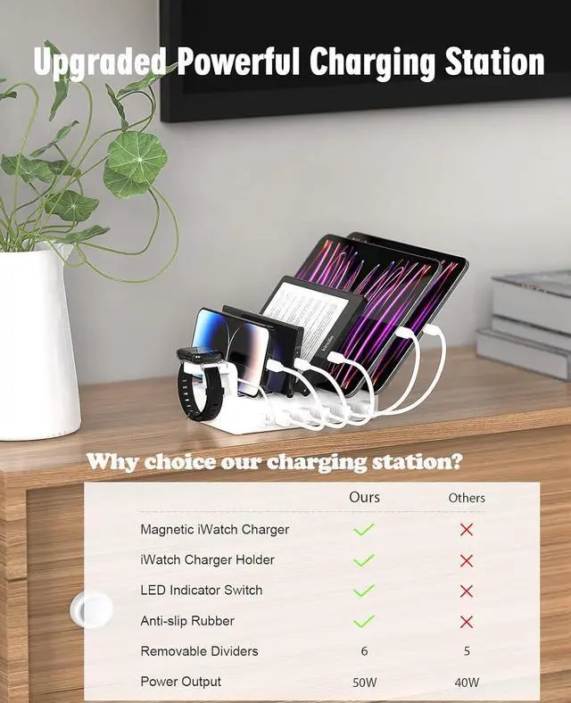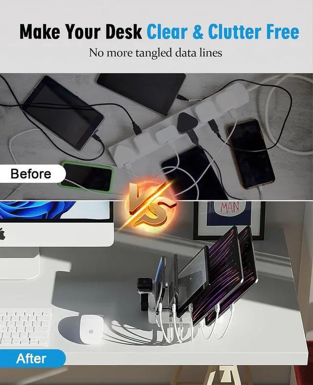 Tidy & Organized: The charging station android multiple devices enables you to conveniently charge up to 6 devices simultaneously in a single location. This multi pad docking station helps declutter your desk by keeping cables neatly organized. Additionally this multiple device charging station serves as a handy organizer for electronic devices preventing them from being scattered around??