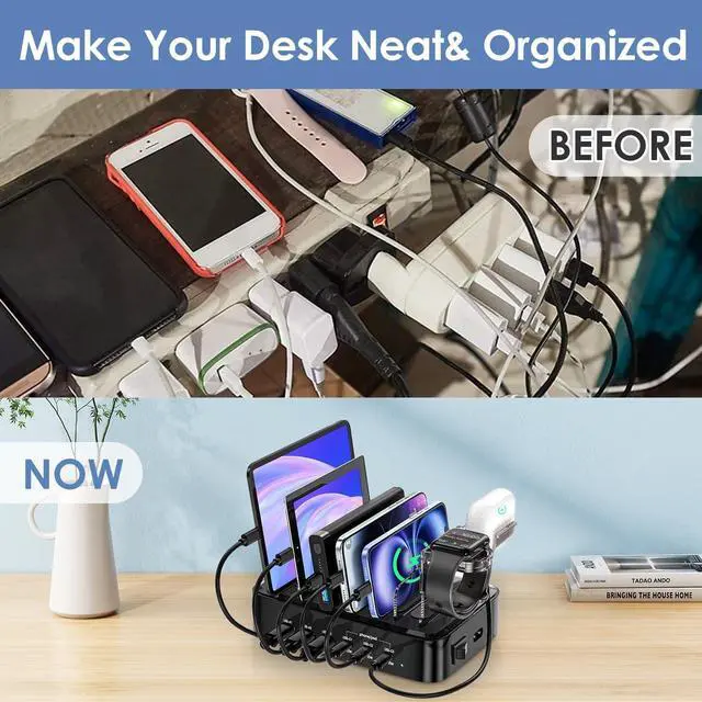 Organized & Clutter-Free: Say goodbye to tangled wires and multiple chargers. Our compact design keeps your desk tidy by organizing all your charging needs in one multi port usb charging station and dock eliminating the need for multiple outlets and cables?