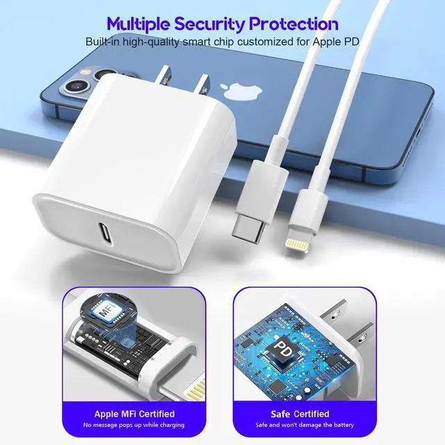 3X iPhone Charger Fast Charging 50% in 30 minutes: iPhone Fast Charger equipped with PD 3.0 USB Type C power delivery wall plug, PD 3.0 Quick-Charge USB C port reach up to 3X faster than original 5W charger, charging your iPhone 14 up to 50% in just 30 minutes, saving over 1.5 hrs for you. Perfectly compatible with all iPhone Series with PD 3.0 usb-c quick charging port and iPhone Certified 10 ft long fast charging cable.