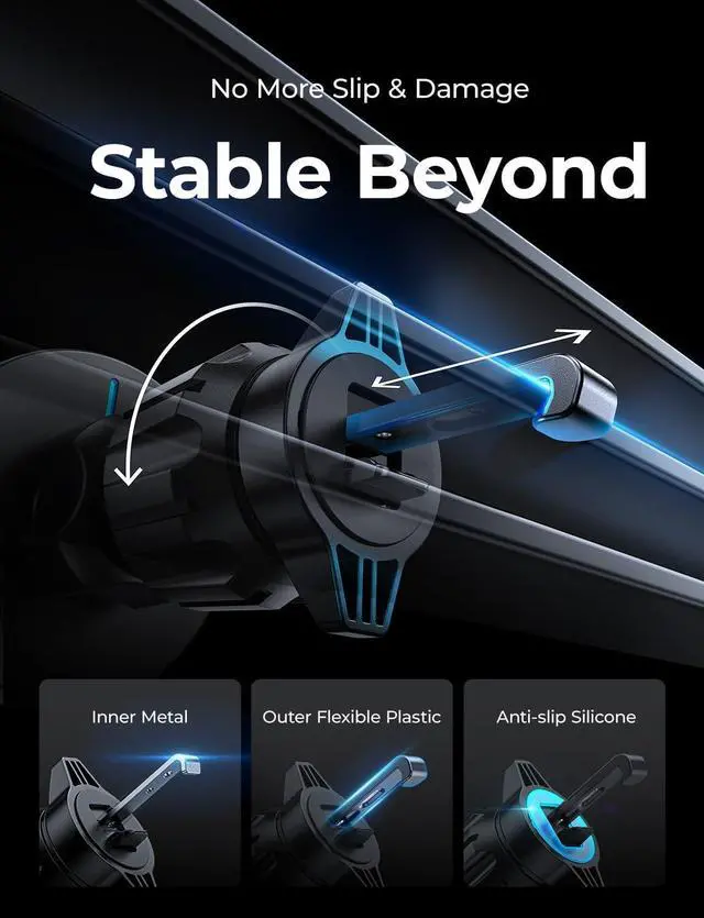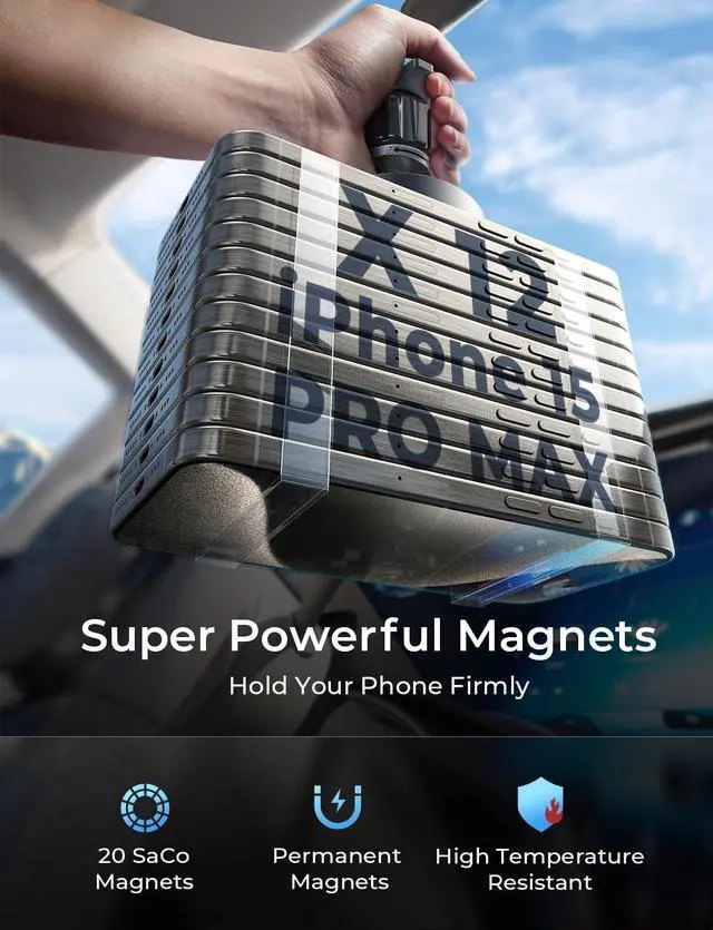 [20 Permanent Magnets]: We upgrade the magnet to the permanent magnet, because of the latter provides higher precision, better corrosion resistance and more excellent magnetic performance. What' s more, the magnet number of the magsafe 3 car mount charger is upgraded to 20, which can hold your phone stably and won' t drop. You don' t need to worry your phone will fall off anymore.
