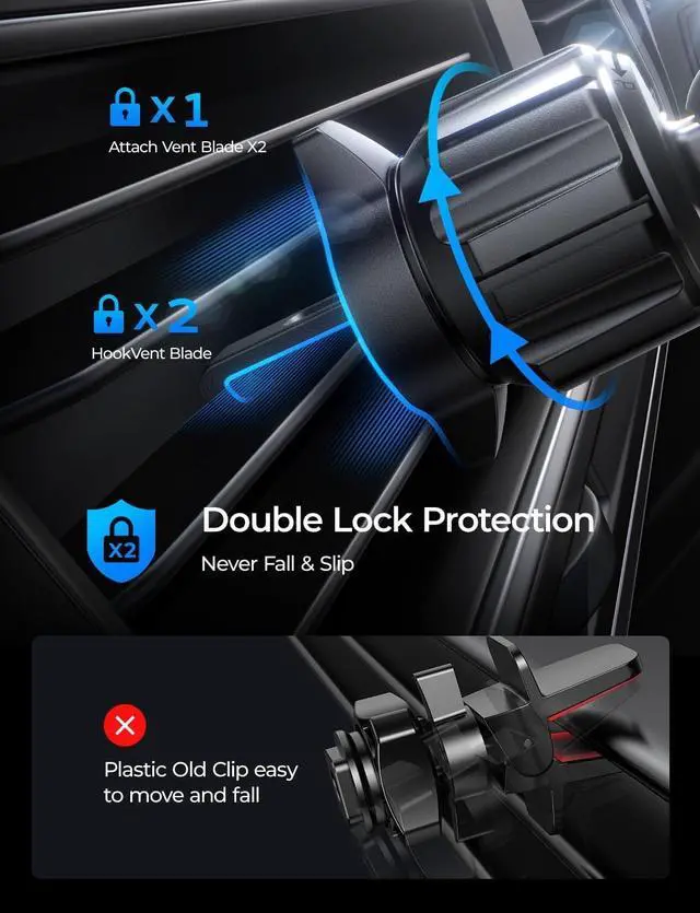 [Compatible with Horizontal & Vertical Vents]: The Steel hook clip of this magnetic car phone charger is 50% longer than the ordinary one. It' s compatible with most Horizontal & Vertical vents, which solves the common problems of poor compatibility and cradle easy falling off on the market. We upgrade the wireless iPhone charger to meet all the needs of the car vent.