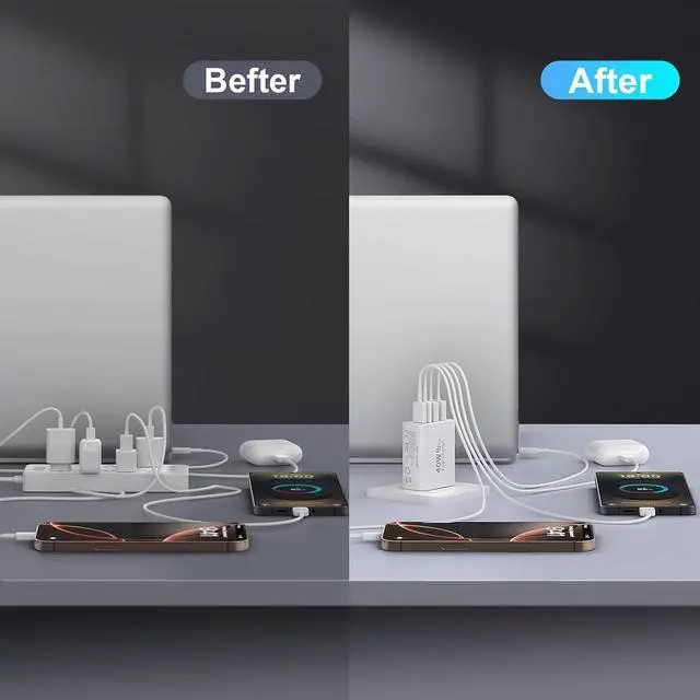 USB C Wall Charger MultiportUpgraded USB C Charger Block has Dual USB-C ports and Dual USB-A ports. Allow users to charge 4 devices simultaneously to minimize waiting time. Incredible compact size for enhanced portability. All this power comes installed in a pocket-friendly compact body, to go wherever the journey takes you. Ideal for home, office and on the go.