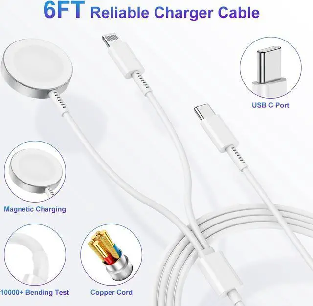 Safe and Reliable: This iWatch charging cable is made of high-quality ABS+PC and pure copper wire to avoid shortening its life due to aging and use, it has passed 10000 times of bending tests. USB C fast charger built-in multiple protection system, it can avoid overvoltage, overcharging, overheating and other problems