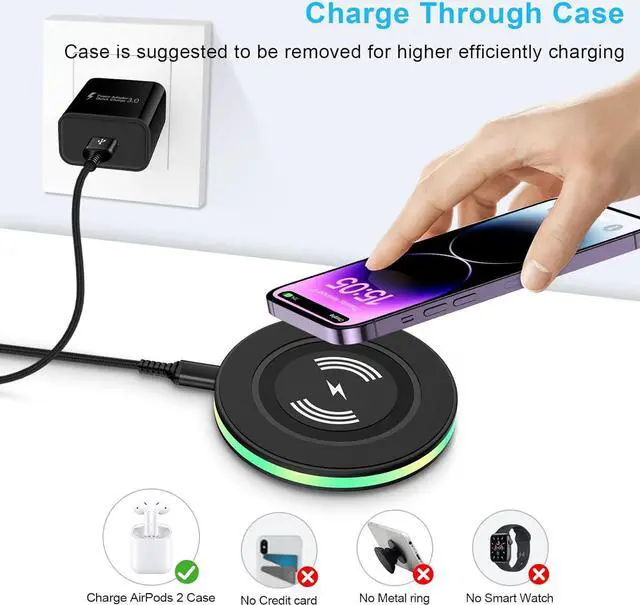 Extensive Compatibility: 15W wireless fast charger for Samsung Galaxy S25/S24 Ultra/S24/S24+/S23 FE/S23/S23+/S23 Ultra/S22/S22+/S22 Ultra/S21/S20/S10/S10+/S10E/S9/S9+/S8/S8+/S7/S7 Edge, Note 20/20 Ultra/10/10+/9/8/5, Google Pixel 7 Pro/7/6 Pro/6/5/4XL/4/3XL/3/2XL/2/XL; 7.5W iphone wireless charger fast charging for iPhone 15/15 Plus/15 Pro/15 Pro Max/14/14 Plus/14 Pro/14 Pro Max/13/13 mini/13 Pro/13 Pro Max/12/12 Pro/12 Pro Max/12 Mini/11/11 Pro/11 Pro Max/XS/XR/X/XS Max/iPhone 8/8+; 5W standard iphone charging pad for Airpods 2, Galaxy Buds and more devices.