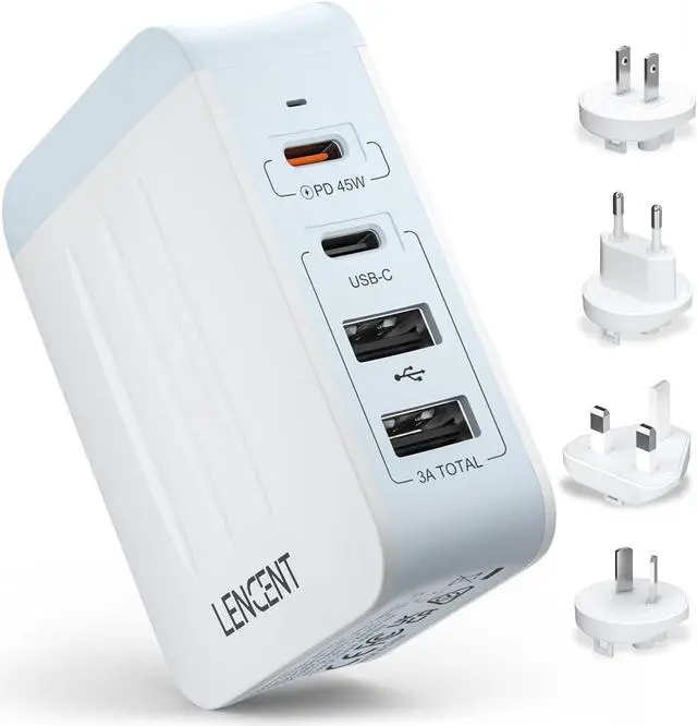 LENCENT 45W Multiple USB Wall Charger, International Cell Phone Charger with 2 PD Type-C+2 USB, Fast Charger Block for All iPad iPhone 15 14 13 12 Pro Max Pixel Note Galaxy, USA/UK/EU/AUS