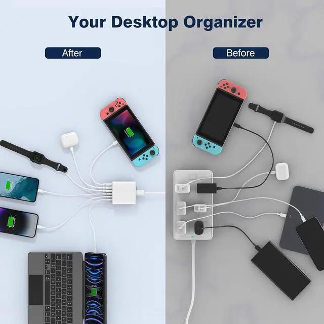 Desktop Charging Station: Equipped with 3 USB-C ports and 3