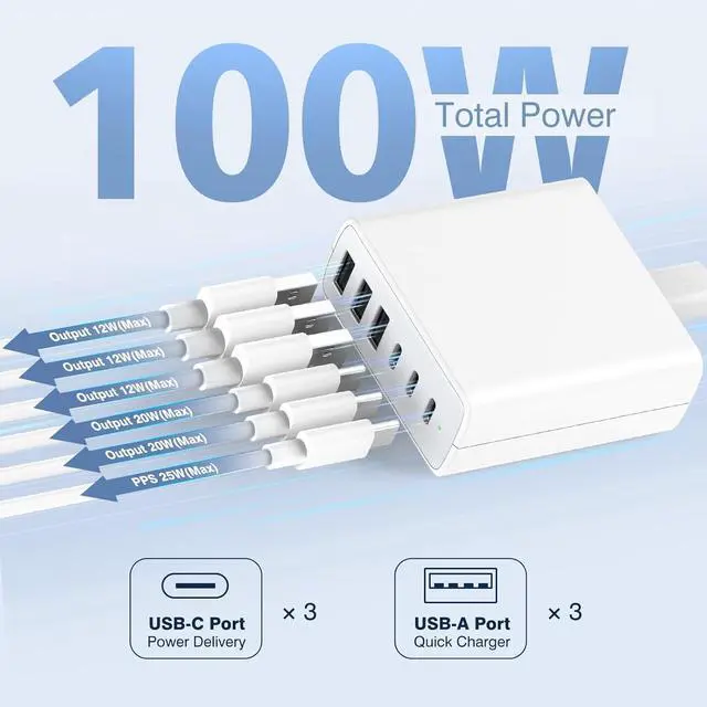 A1: QC 18W, USB A2/A3 share 12W, and max 12W while single port charging. Fast charging six of your devices simultaneously instead of taking up 6 wall outlets. 5FT Extended power cord is convenient for home or office