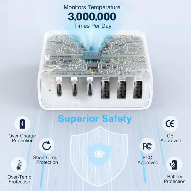 All-Round Protection: Built-in multiple smart features and safeguards to protect against overcharging, overheating, and short-circuiting. Intelligently learning your daily charging routine to reduce battery aging, be friendly to the battery, and provide a 2 times longer battery lifespan. Tested with over 4 hours high temperature to provide a more secure and safe charger