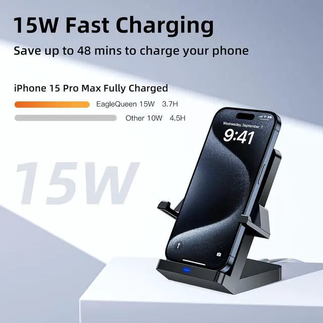 RAPID 15W WIRELESS CHARGING: Experience the convenience of EagleQueen' s 15W fast wireless charging capability, providing a swift and efficient power boost for your devices, making it an ideal choice for those seeking a fast and reliable charging solution.