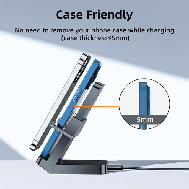 CUSTOMER SERVICE: Customer satisfaction is our top pirority. We are committed to addressing any issue related to this fast wireless charger from you. Our global friendly team is industry expert at-the-ready to assist you with any questions that might arise about your iPhone charger stand. Count on us for prompt and effective support, ensuring your peace of mind with our innovative and reliable charging solution.
