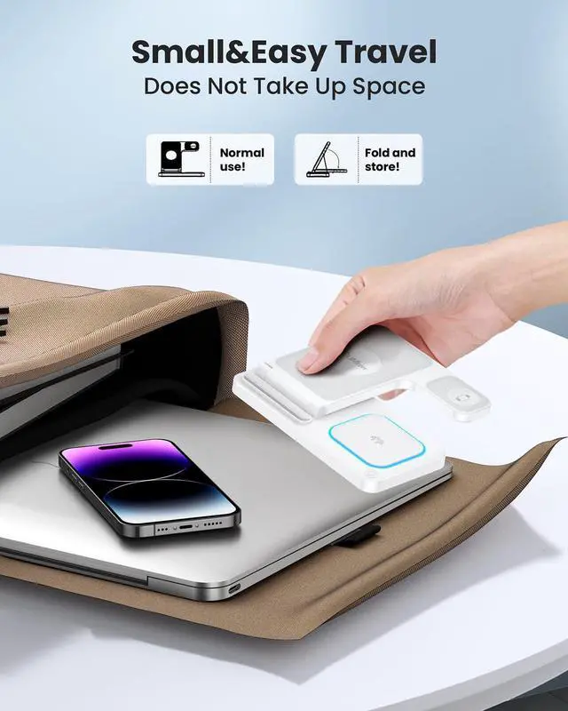 3-in-1 Wireless ChargerCompact and foldable, this 3-in-1 wireless charger is the same size as an iPhone 14. Charge your iPhone, Apple Watch, and AirPods simultaneously. A must-have wireless charger for Apple fans