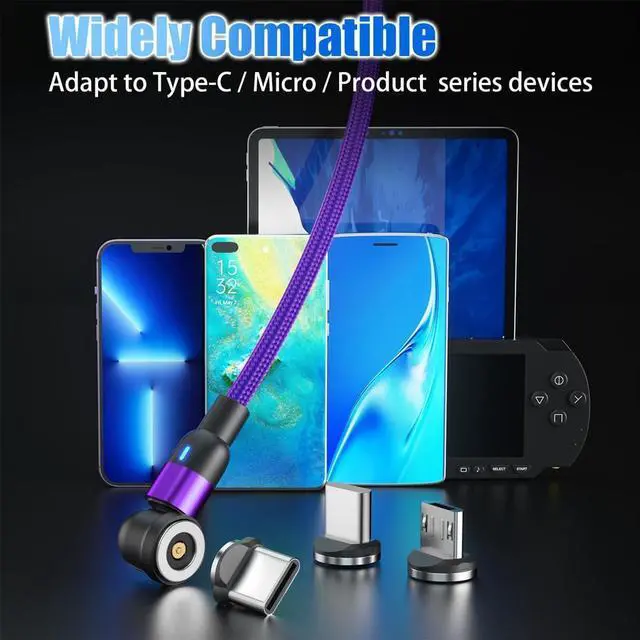 Compatible with Most Devices3 in 1 mobile phone fast charger cable has 3 magnetic tips for each line, wide