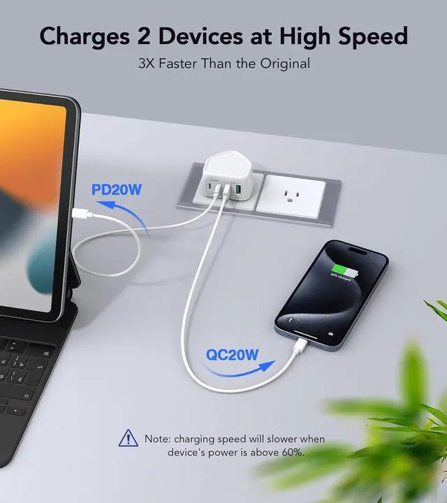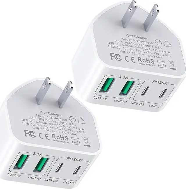 USB C Wall Charger: Dual port usb charger and dual port usb c charger, is a very popular combination in the charger industry. USB C port has a maximum output of PD20W, USB A port has a maximum output of 15W, total power output 40W. Multiple electronic devices, multi-port charger options