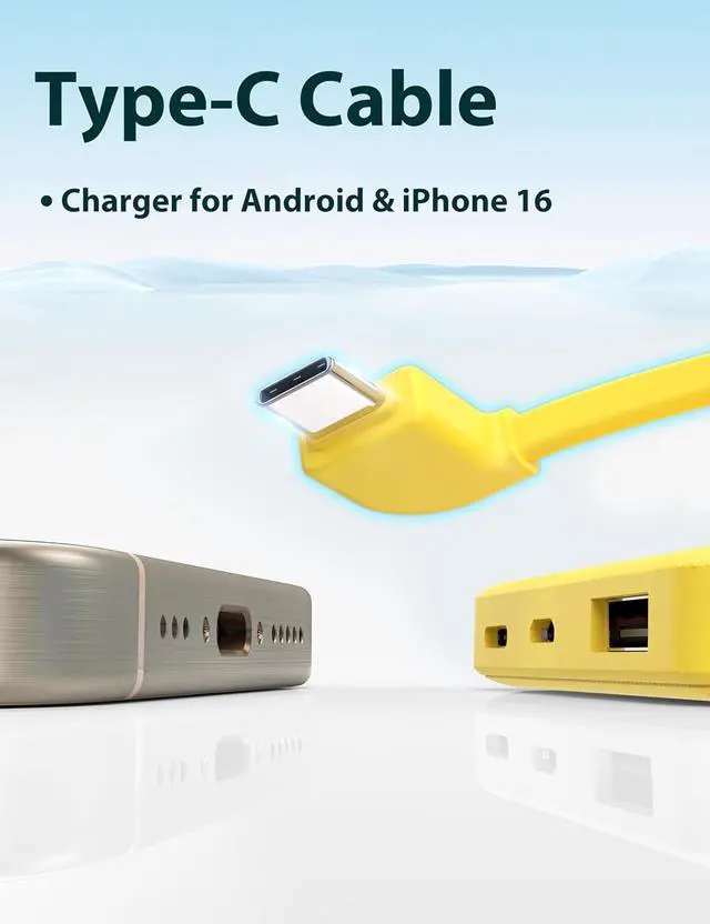 • Three In One: This power bank is built-in type C cable and other cables that compatible with mobile phone directly. You do not need to take charging cables