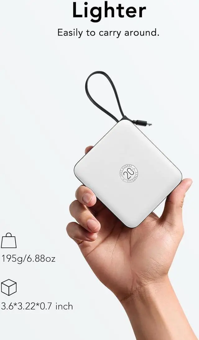 [Airline-Approved Safety] Travel worry-free with our mini portable charger, meeting strict aviation safety standards. It includes intelligent safeguards against overcharge, overvoltage, overcurrent, short-circuits, and overtemperature.