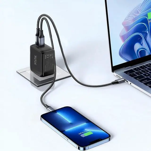 GaN Technology: New GaN chargers are fast charging and safer than traditional charger blocks, with 50% faster charging, 20% smaller devices and automatic voltage adjustments, all while giving off less heat. Statik' s powerful 48W Charger outperforms typical phone chargers with 5W of power, delivering 7 times more power.