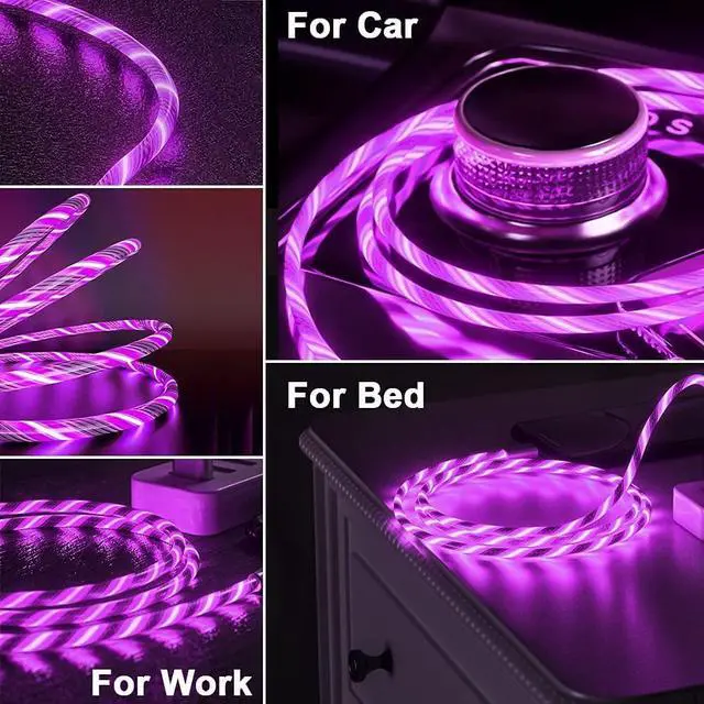 Cool LED USB C Cable -- Visible LED light up type c charging and data Sync cable, which indicates charging status with LED light. It decorates your space cool and you can find your devices quickly in dark condition