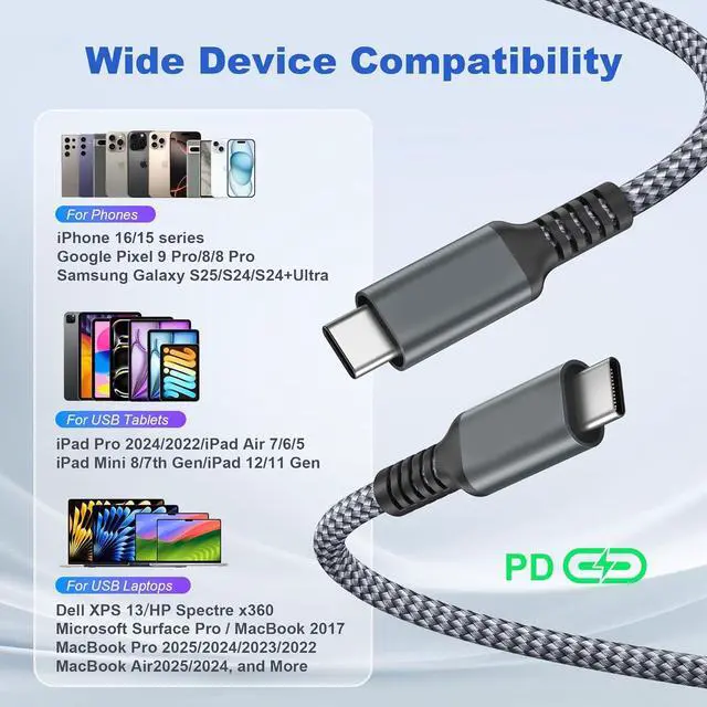 FAST CHARGING FOR USB-C DEVICES --- You can benefit from the latest speed boosts these cable brings when charging your USB C device. It supports up to 100W (20V 5A) charging speeds, so fast charging wont be a problem for your laptop or smartphone. (This USB-C cable does not support video transmission. )