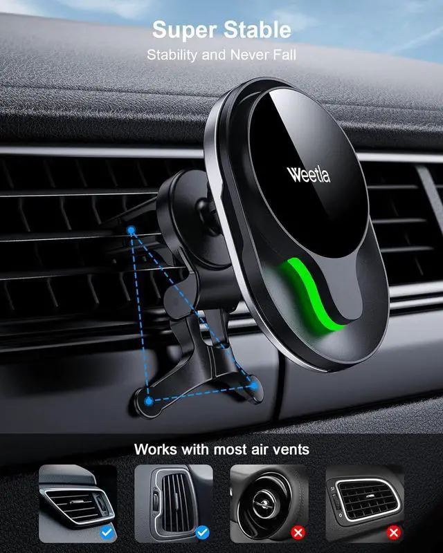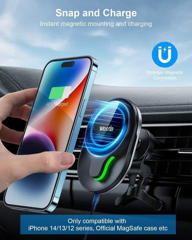 Compatibility NoteThis magnetic wireless car charger is only compatible with iPhone 14/13/12 series, Official MagSafe case etc
