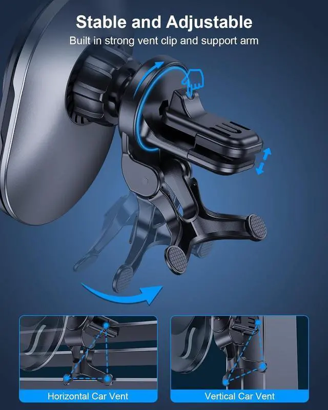 What You GetMagnetic Car Charger*1, Air vent clamp*1, USB-A to USB-C cable*1, Manual*1(Note: car charging adapter not included)