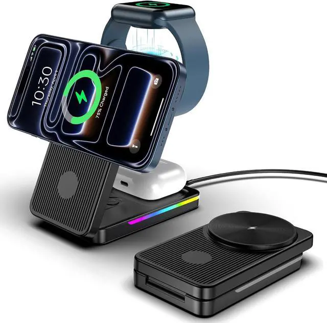 Multi-Device Charging - This 3 in 1 wireless charging station compatible with iPhone 16/15/14 Pro Max/14Pro/14Plus/14/iPhone 13/13 Pro/13 Pro Max/13 Mini/iPhone 12/12 Pro/12 Pro Max/12 Mini; AirP ods Pro 2/3/Pro/Galaxy Buds 2 Pro/2/Pro/live/ iWatch Series 8/7/6/ 5/4/3/2/1/SE only.