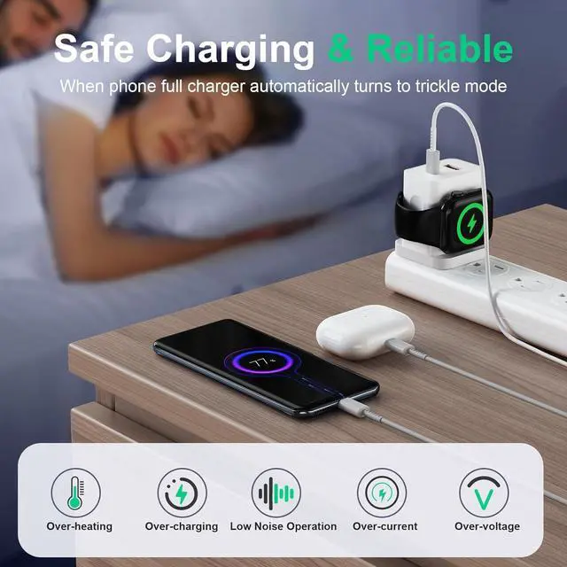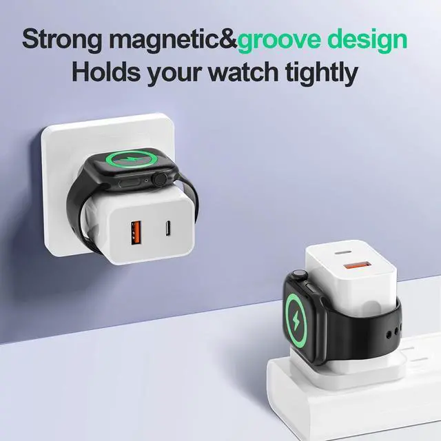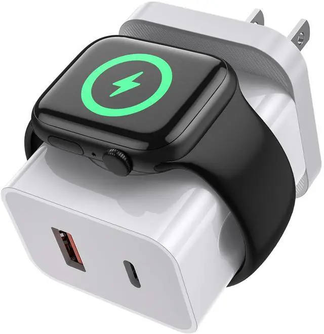 Dual Port Fast Charging BlockThis apple watch charger supports fast charge for mostly PD QC 3.0 protocol devices, you can quick charger for you new iwatch& iPhone to 60% battery in 30 mins. meets your daily charging needs