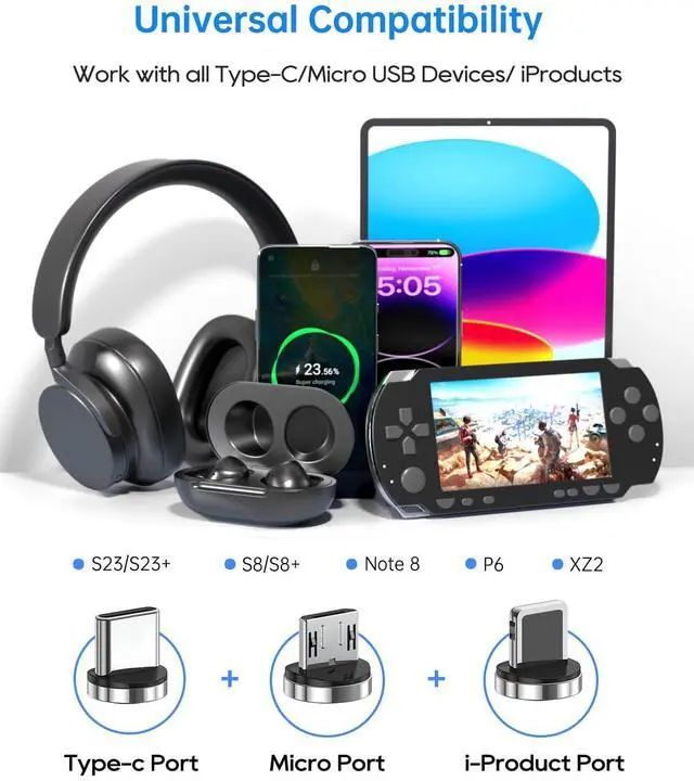 Super Value PackMagnetic charging cord *2, magnetic micro tips *2, magnetic Type-C tips *2, magnetic i-product tips *2, our worry-free 12-month and friendly customer service.