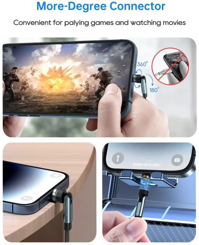 360° Rotation & 180° L-Shaped DesignOur magnetic charging cable has a 180 ° joint and a 360 ° rotating magnetic click on design. Using devices while charging becomes much easier and more convenient! Playing games, watching videos, writing emails or sending Whatsapp messages while charging becomes much more comfortable. Gamers in particular benefit from the increased freedom of movement.