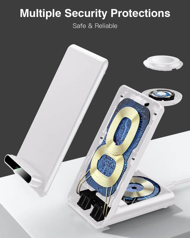 : This 3 in 1 charger offers a smart way to save time and space, allows you place your device on the charging station easily. With a 2.7 * 3.5 inch base, its small and compact design takes up less space and leave you more room on your nightstand, table, or workspace., 17.